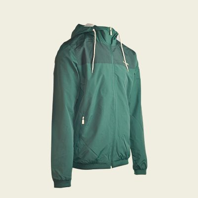 A kabát sötétkék és taupe színben kapható, és sötétkék, légáteresztő hálós béléssel rendelkezik. A szélvédő kabát két külső és egy belső zsebbel rendelkezik, amelyek mindegyike cipzáros. A rugalmas szegély biztosítja a kabát szoros illeszkedését.