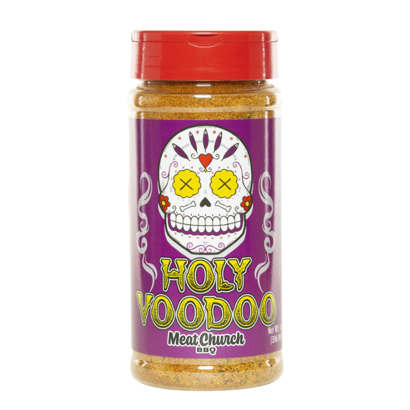 - Meat Church Holy Voodoo (397 g): Kajszi-texasi jalapeño ihlette, savanyú-fűszeres cajun rub. Csípős, gazdag íz pulykához, bordákhoz, sertéshez, csirkéhez, zöldségekhez – versenyeken nyertes oldalashoz-csirkéhez.
