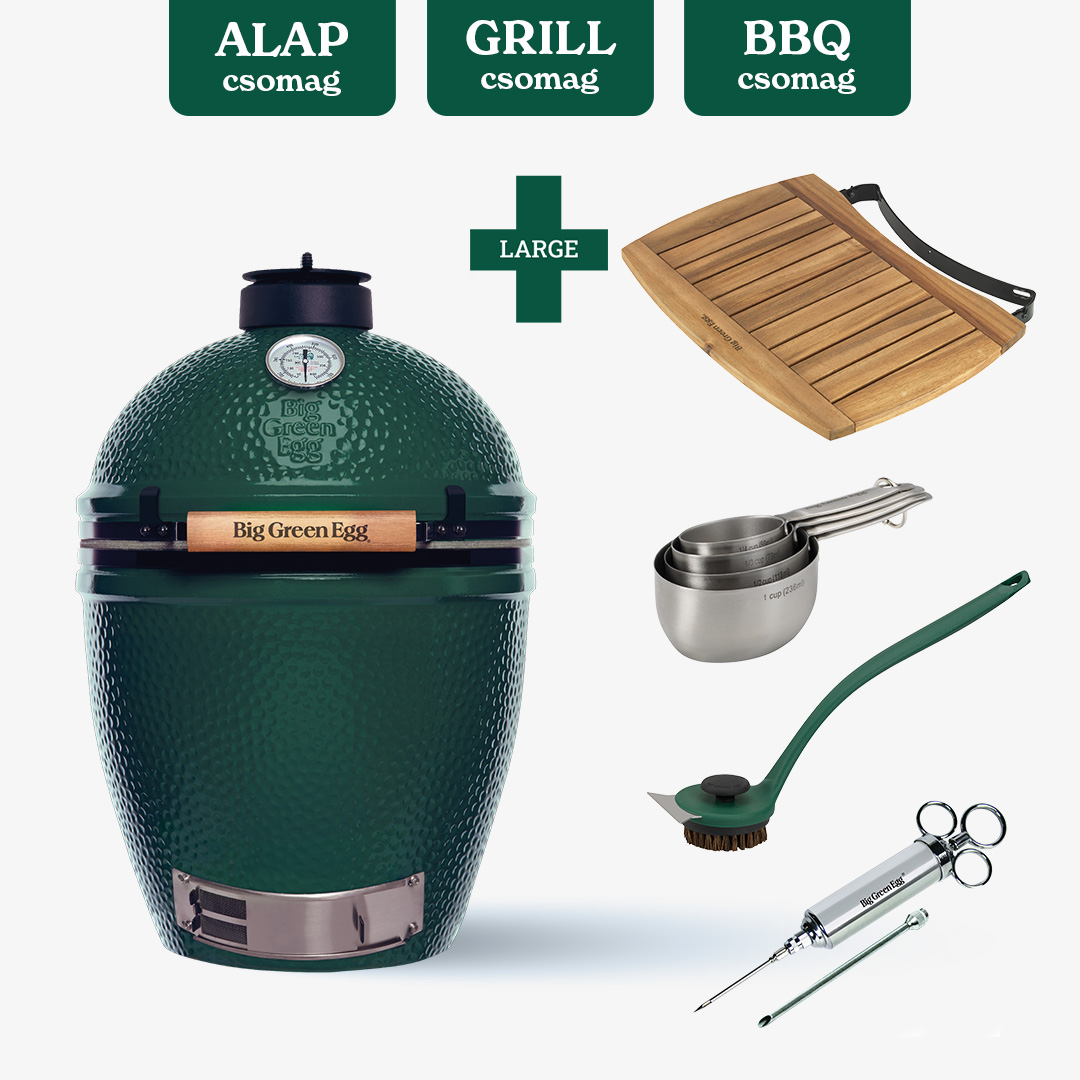 - GRILL csomag: A Big Green Egg csomag GRILL változatában az alap csomag kiegészítőin felül találsz védőhuzatot a grill védelmére és öntöttvas rácsot a tökéletes steak sütéséhez. A Big Green Egg csomag ezen verziója ideális azoknak, akik szeretnék kihozni a maximumot a grillezésből.