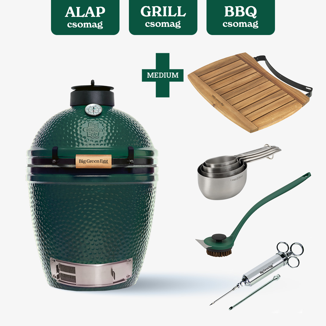 - GRILL csomag: A Big Green Egg csomag GRILL változatában az alap csomag kiegészítőin felül találsz védőhuzatot a grill védelmére és öntöttvas rácsot a tökéletes steak sütéséhez. A Big Green Egg csomag ezen verziója ideális azoknak, akik szeretnék kihozni a maximumot a grillezésből.