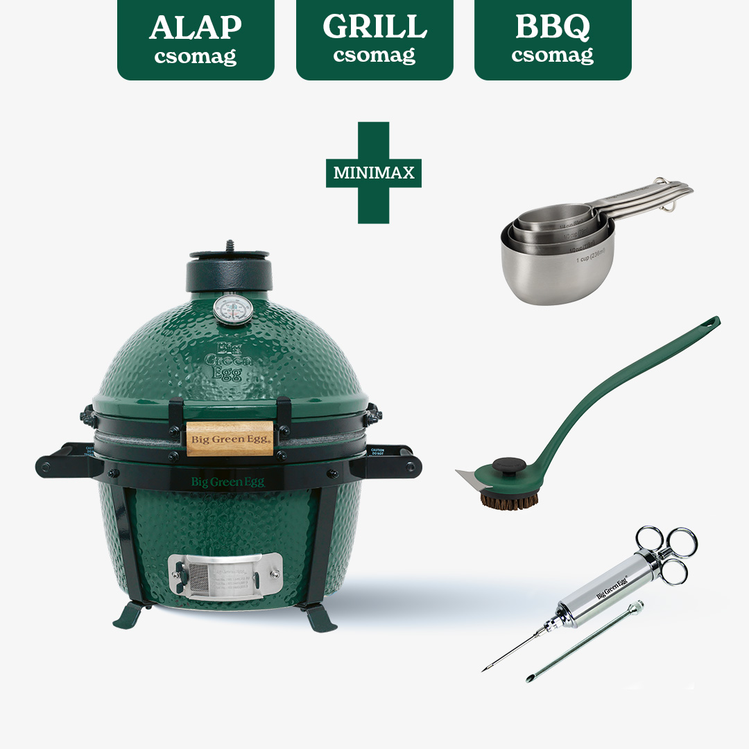 - ALL-IN csomag: Az ALL-IN csomagokban praktikus oldalpolcokat, pácoló fecskendőt, mérőedény készletet és rácstisztító kefét találsz, amelyek segítik a sütést és a tisztítást a Big Green Egged használata során.