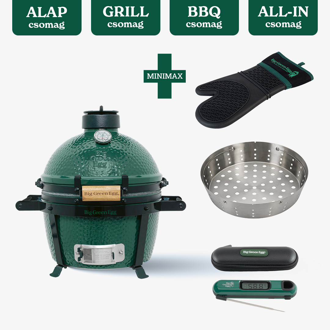- GRILL csomag: A Big Green Egg csomag GRILL változatában az alap csomag kiegészítőin felül találsz védőhuzatot a grill védelmére és öntöttvas rácsot a tökéletes steak sütéséhez. A Big Green Egg csomag ezen verziója ideális azoknak, akik szeretnék kihozni a maximumot a grillezésből.