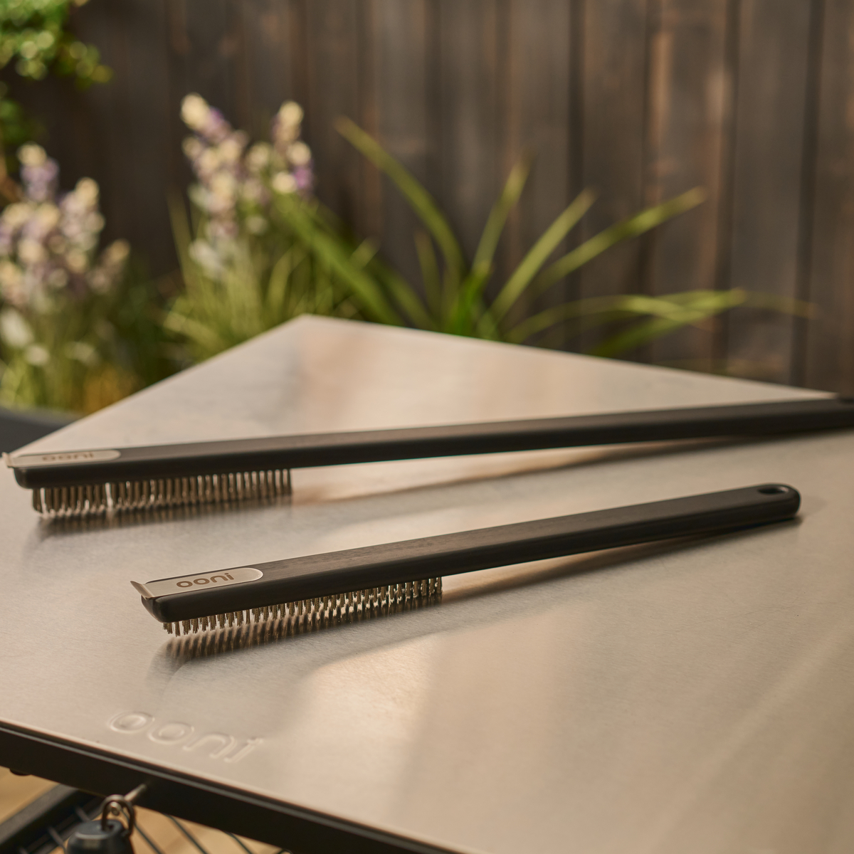 Az Ooni Pizzakemence tisztító kefe rövid verziója kifejezetten a 12–16 hüvelykes kemencék pizzakőjének összes sarkához készült. A hosszú verzió pedig a 16–24 hüvelykes kemencék mind a négy sarkát könnyedén tisztítja.