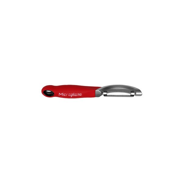 A Microplane Professional Hámozó Recés Pengével ultraéles, rozsdamentes acél pengéivel ideális puha héjú gyümölcsök és zöldségek, például paradicsom, kivi vagy mangó gyors és precíz hámozására, ergonomikus és kényelmes kialakítással.
