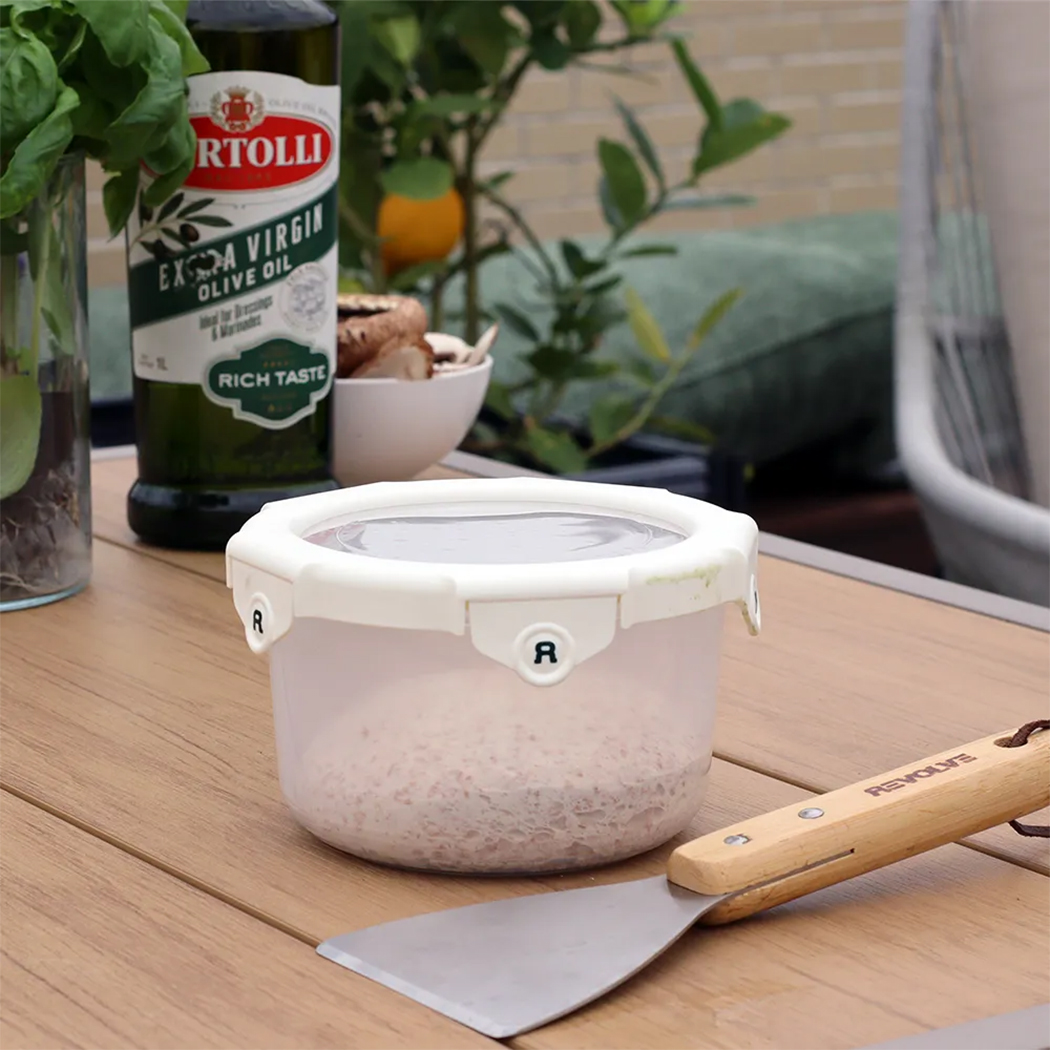 A Revolve pizzatészta tartó szett három darab, átlátszó, strapabíró dobozt tartalmaz, amelyek tökéletesek a tészta kelesztésére és tárolására. Légmentes zárásuk megőrzi a tészta frissességét, kompakt méretük pedig könnyen elfér hűtőben vagy polcon.