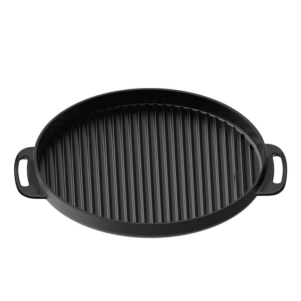 prémium minőségű kiegészítő kerti grillhez és sütőkhöz. Masszív öntöttvas konstrukciója biztosítja a kiváló hővezetést és hőtartást, a rácsos sütőfelület pedig karakteres, grillcsíkos sütési eredményt ad, legyen az hús, hal vagy zöldség. Ideális választás azoknak, akik autentikus grillezett ízeket szeretnének létrehozni otthon.