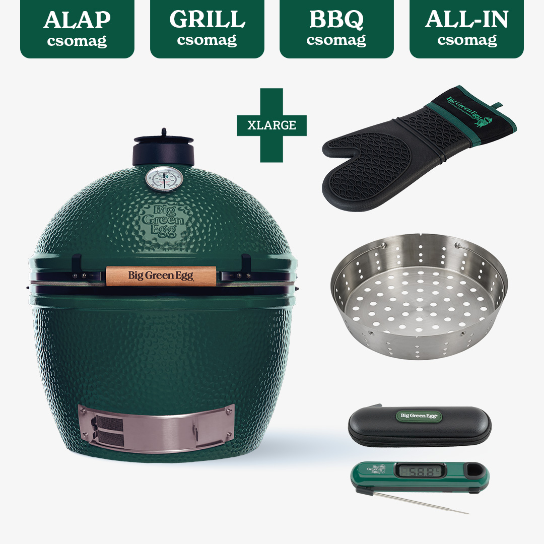 - GRILL csomag: A Big Green Egg csomag GRILL változatában az alap csomag kiegészítőin felül találsz védőhuzatot a grill védelmére és öntöttvas rácsot a tökéletes steak sütéséhez. A Big Green Egg csomag ezen verziója ideális azoknak, akik szeretnék kihozni a maximumot a grillezésből.