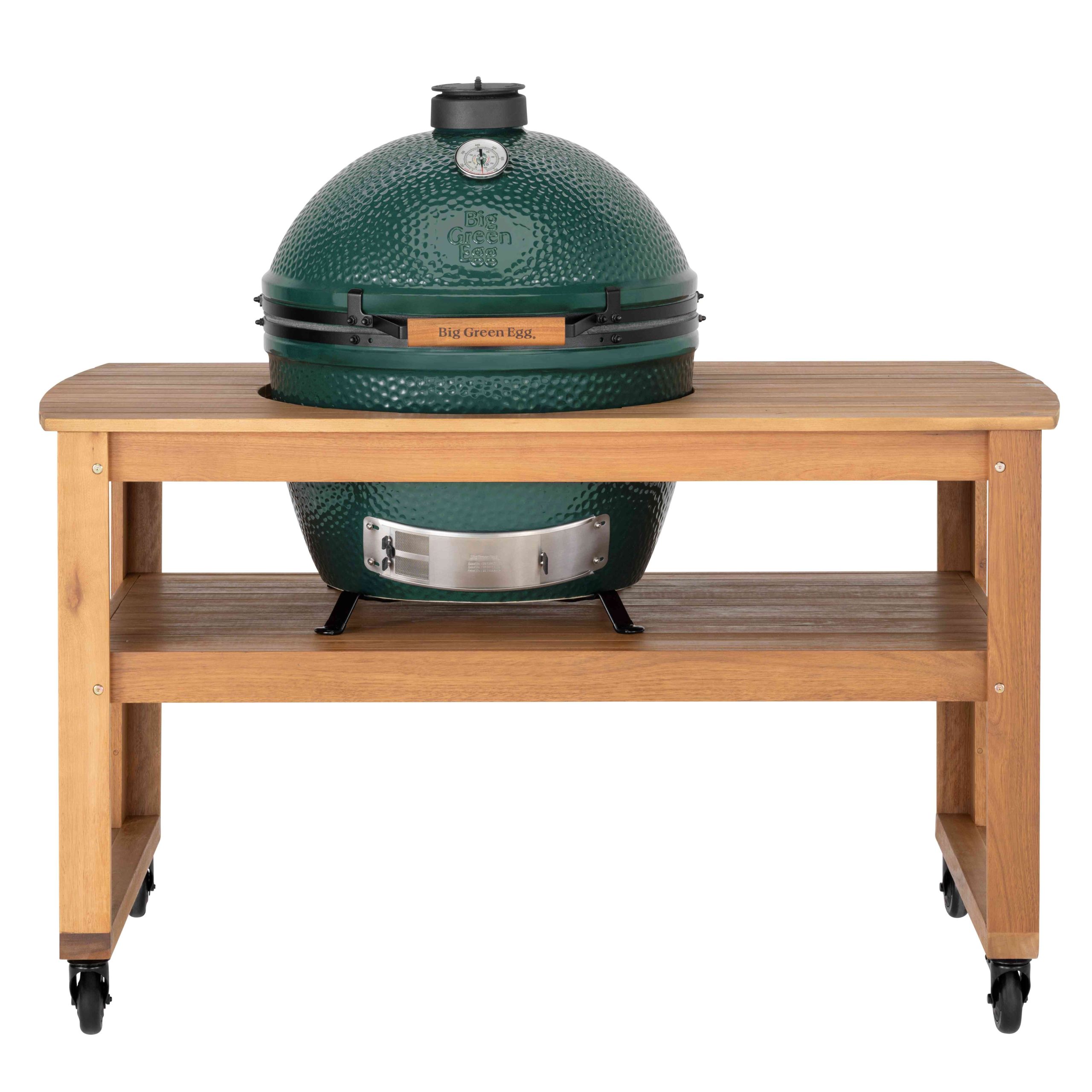 - A Big Green Egg eukaliptusz asztal görgővel stílusos és praktikus megoldás a kültéri grillezéshez. Az eukaliptusz fa természetes ellenállóképességgel rendelkezik, így hosszú távon megőrzi állapotát, a görgők pedig könnyű mobilitást és stabilitást biztosítanak.
